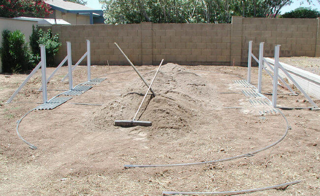 this photo the braces for the Atlantic above ground pool are set and level. Laser leveled front and rear,
