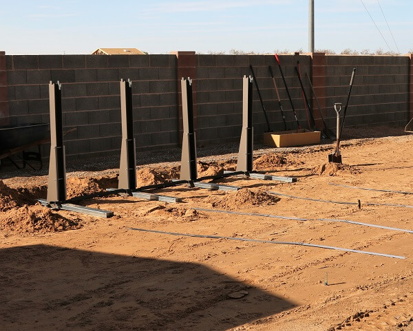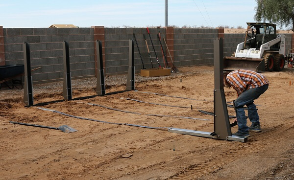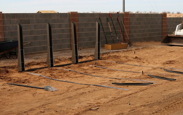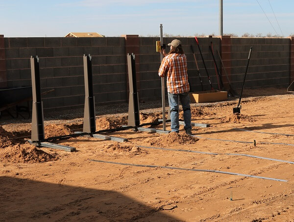 We assemble the uprights and top rails as the wall is going up, this gives the wall the support needed to keep it from blowing over.