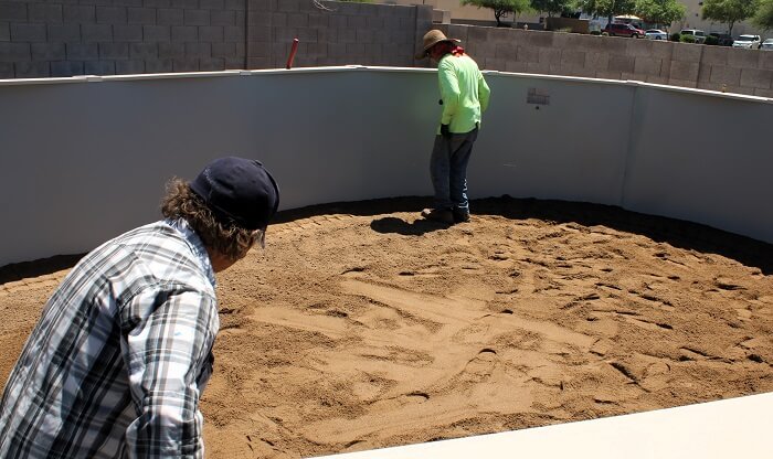 The other mistake is not covering the pressure plates with enough sand. Some of these things are big, and almost all of them sharp. They are very important to the integrity of a pool, and cannot be left out, but they must be well covered. Remember, the weight of the water increases as the pool fills, whatever is over those plates will compress. Not only will sand compress it will also shift into large openings, like those created at the ends, or around the pressure plates.
