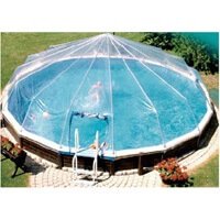 From the Sun Dome listing you learn it comes with 1 door and 3 windows. One of the benefits is the heat factor, you can expect about 40 degrees in air temperature and up to 20 degrees in water temperature. Another benefit is the protection from outside debris making pool cleaning much easier. The dome is made with 12 gauge clear vinyl supported with an aluminum frame.