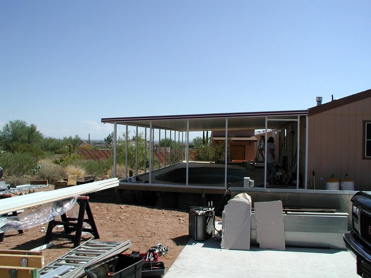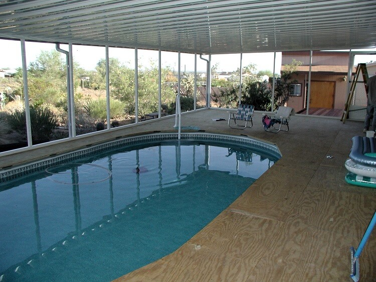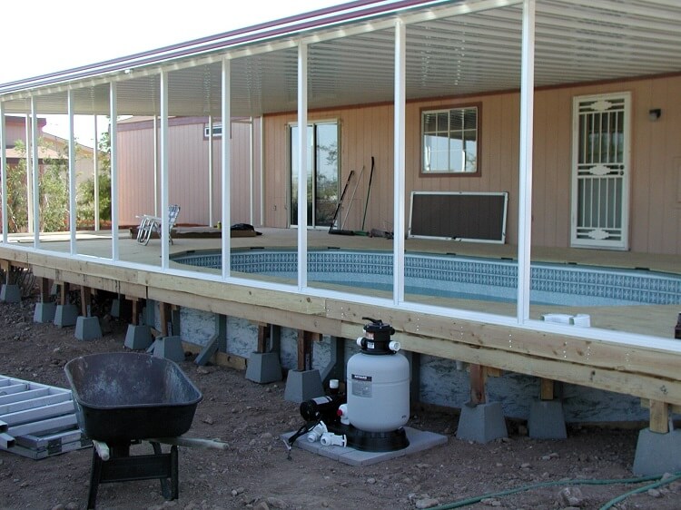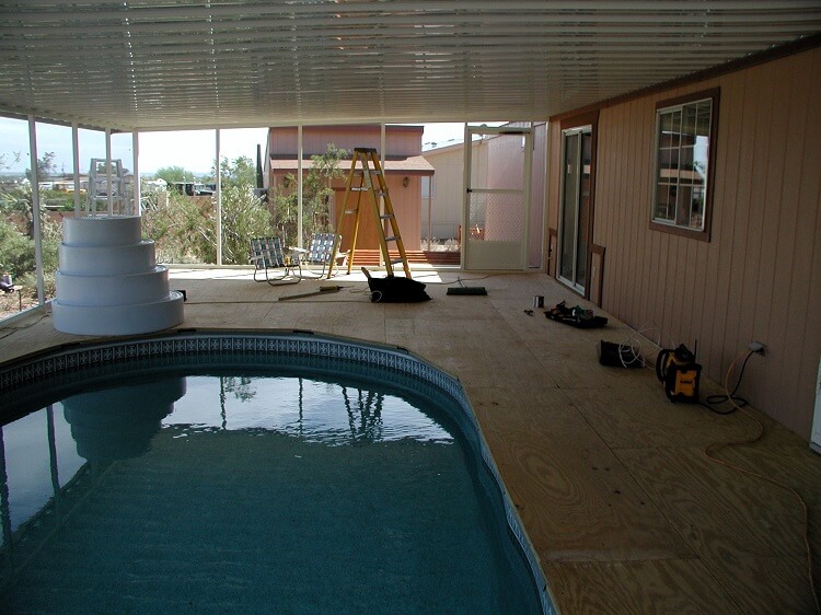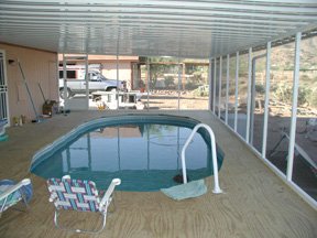 The project was to build an above ground pool surrounded by a wood deck, covered with an aluminum awning and enclosed in a screen room. Not at all an easy project but since I am in the pool and awning installation business I took on the job.
