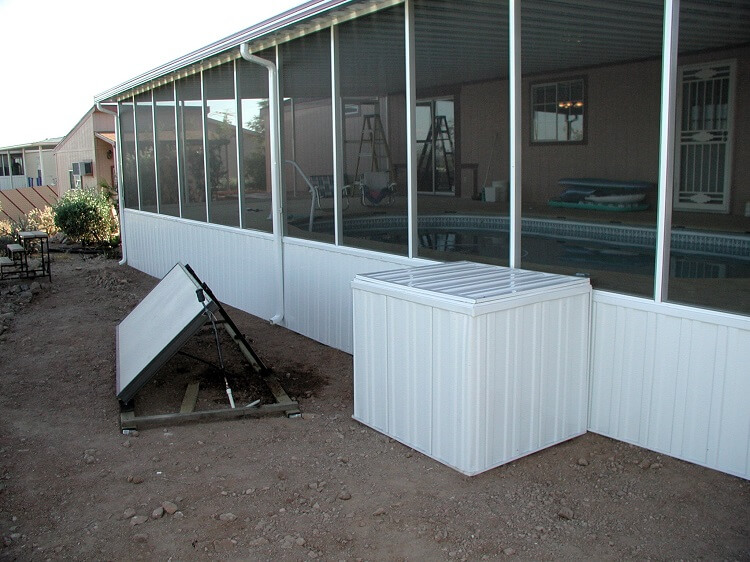 A back view showing the skirting complete and a box built around the filter.