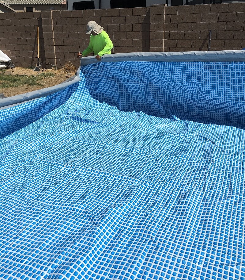 Soft Side Oval Above Ground Pool Being Installed.