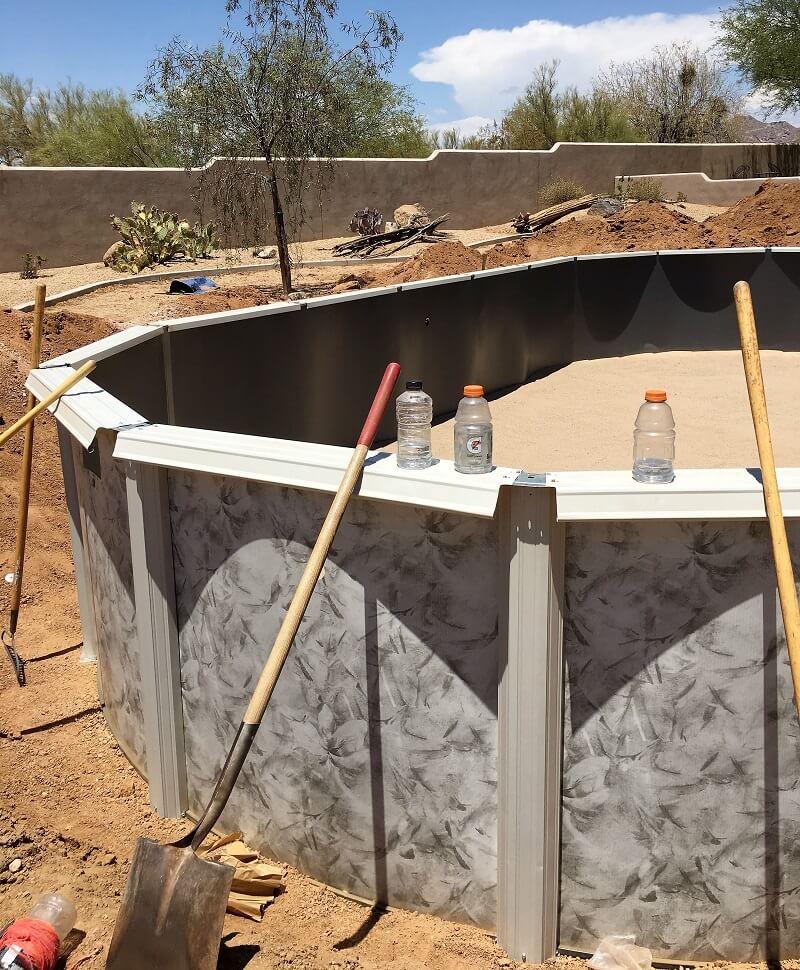 This is another oval above ground swimming pool we are installing. This one is going partially in ground. On this job we are working in the Chandler Arizona area.