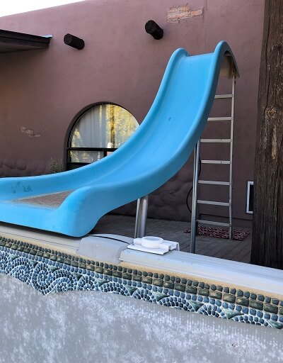 The pool slide is close to the ground so there will be a lot less risk of injury than some of the taller slides.