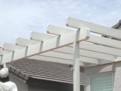 Newport Shade Structure is the solid cover awning using 6" flat panels instead
