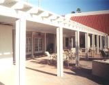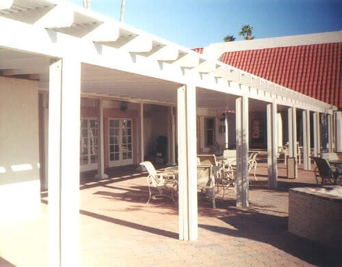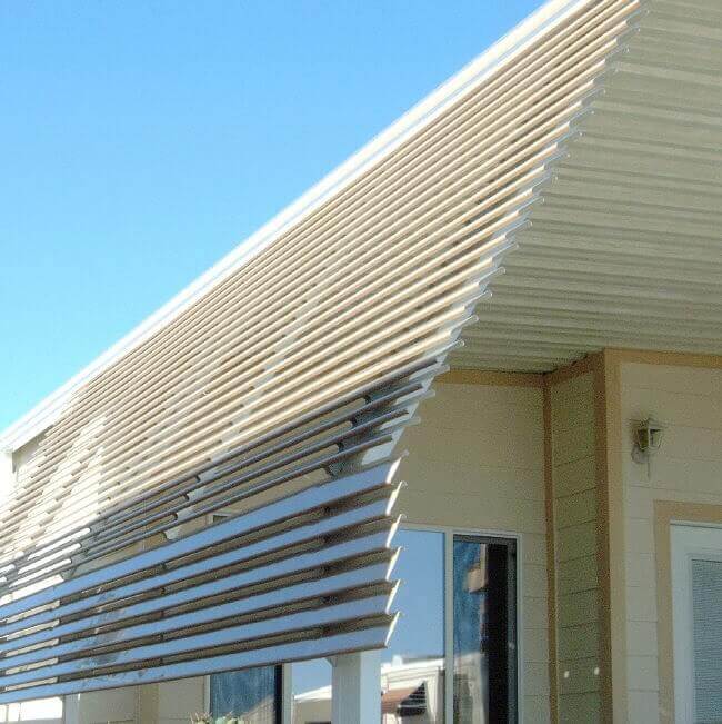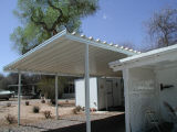 This page of aluminum awning pictures should give you some ideas for adding awnings to your own home. Aluminum awnings are a maintenance free way to shade a patio or carport. The color choices are numerous so matching your home color scheme is always easy. There are dozens of accent trim color choices as well as different frame and panel colors.