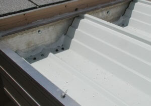 caulking and a small piece of color trim to dam the gutter ends. Attach the
