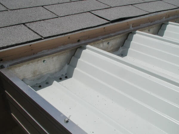 Another important factor to consider is the gutter. When we install awnings in the snowy parts of Arizona we turn the gutter upside down so it will not cause the snow to back up and sit on the awning any longer than necessary. Our high country's are also full of pine trees that would continually clog a gutter so this method just seems to work better. An I-beam could just as easily be used in place of an upside down gutter. This page shows a typical aluminum awning installed in snow country.