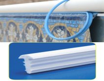 Another type of beaded liner, the J-hook, does require the pool rails to come off. Once the rails, plates, and retaining rods are removed the liner just lifts off the wall.