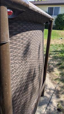 Within 24 hours of having the pool completely filled and after the leak fiasco my pool is leaning downhill. The poles are all straight but they are at an angle in some areas and higher in other areas. I've looked at it and checked it, there's some bulges, nothing serious since I figure there's only a little over a month left of potential swimming days left. I may need to take down the whole pool, sigh, this is me crying. My whole intent this whole time taking all this time to do everything perfect in the right way is so I could have it all set up correctly and not have to worry about it again for a while. I even started with the salt water system from the beginning even though it costs more to start up. Bottom line is I did my best to do it right from the beginning. The idea of draining the pool and losing all the startup money I put into it with the cost of the water, salt and chemicals to balance everything out, just makes me sick. For now I've just decided to take it easy and be extra careful around the areas where the pool is leaning and slightly bulging for the next month and a half at most that we have left for the swimming season.