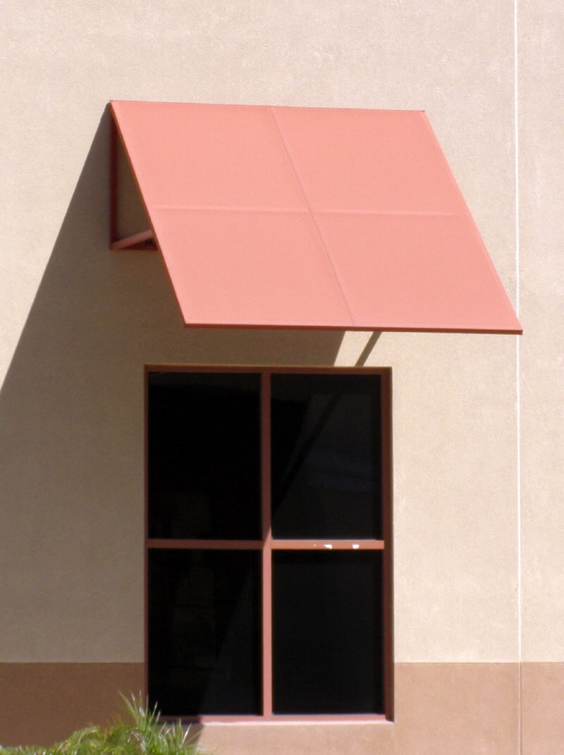 Steel awnings like these are becoming a favorite because they are almost indestructible. Since they are all custom made the designs can be as varied as your imagination allows. Our commercial steel awnings page has more of these metal window awnings.