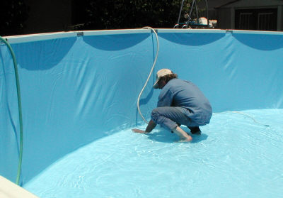The liner is then put back in place and the pool filled. The key is to do it all ASAP so the pool does not sit empty for any length of time.