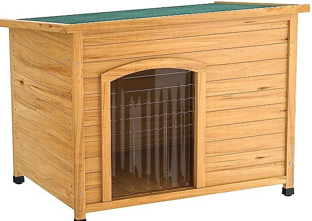 Below are a couple of discount dog houses designed to make life comfy for your favorite pet. They are both in the $120.00 range. The first is the Starplast dog house that is water resistant and easy to assemble. The second is the Homykic wood dog house that is insulated and waterproof.