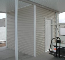 The corners are next to be installed. Vinyl siding corners are best to use wherever possible. J-channel can be used anyplace a wall ends and a corner will not work.