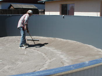 We are having to replace our pool liner due to the sand moving and getting divets under the liner causing the liner to get holes in it. What can we use to keep the sand from moving after we smooth it out?