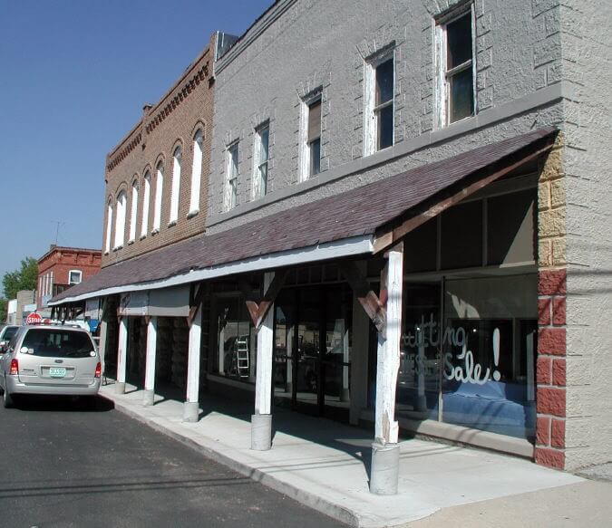 This entire building, in downtown Houston Missouri, will get a complete rehab. We are starting with the front awning. The old rotted fascia has been removed and new fascia, painted with primer, has been installed. A metal fascia cap will be installed over the wood Fascia. The fascia cap has been painted to match the color of the awning framework. The old posts and frame pieces are being replaced or just scraped and repainted depending on their condition.We will be going over the top of the roof with metal roofing panels. The finished product will be a big improvement over the old falling apart mess we walked into.