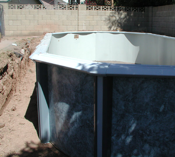 Obviously, the pool didn't collapse in the 15 years since it was first installed, so I suspect that it will last another 10-15 years without collapsing, but I was hoping to be able to get it a little closer to level before completing my repairs. The pool is sunk in the ground all the way around, about 6 inches on the low side (i.e., the side where the water comes all the way up to the top of the pool) and almost 2 feet on the high side (there is a slope on that side of the pool that had to be dug into at the time of the original install).
