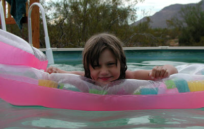 Now to my question: As the pool when filled would be above our youngest daughter's head, I am looking for some type of platform that could be set up inside the pool on one side of the pool area for her to sit on and play - although we will be in the pool with both daughters and they have just taken swimming lessons and know how to swim (they are 5 and 7), I would like her to be able to be in the pool without having to swim or float the entire time.