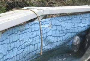 This busy time of year is making it impossible to even get a return call from pool repair companies. The winter before last our 4 year old 15'x 30',48-50" deep oval pool sustained damage by too much ice on the cover and in the pool(?). After a terrible blizzard the sides were pulling in substantially until we slit the liner as instructed to release pressure. Spring time we had the pool checked and liner replaced, all seemed OK.
