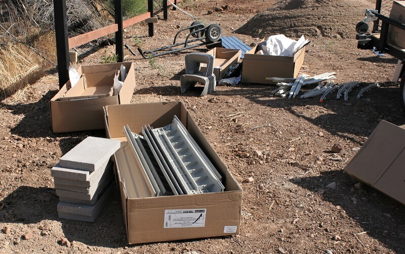 Finally we get to unpacking the boxes. The blocks next to the box are used under the side braces. As always the pool is well packaged, no damage and all the parts are there.