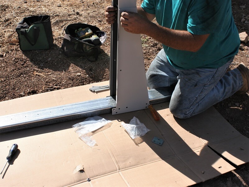 This is a closer look at a side brace being assembled. The instructions for this pool are pretty straight forward in this part of the assembly, just be sure the little gusset plates are installed correctly and all the bolts are tight, but only tighten after they are all installed.