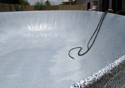 This is also a good time to add a second patch on the bottom of the liner. A patch applied to the under side of the liner is just about guaranteed to never come off. The pressure of the water will hold it in place forever.