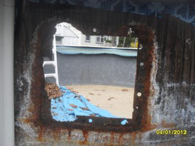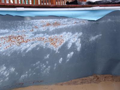 We tried saving the pool wall by ripping more of the liner to relieve the pressure. When we did this we noticed large areas of rust on the inner wall. Would the inner wall rust have anything to do with backfilling the pool or improperly installing the pool? The rust was also located near a top cap that we had to keep getting replaced.