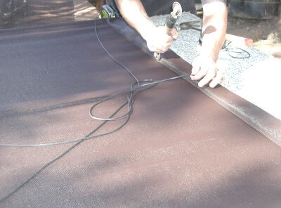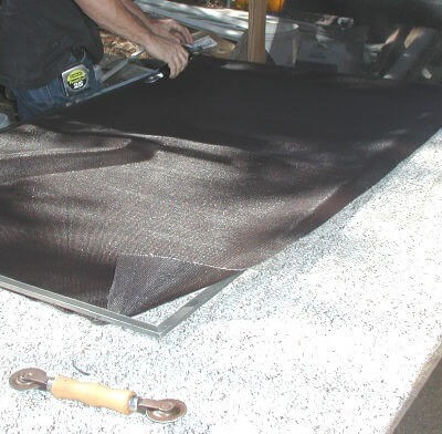 With the first side rolled you go to the center of the opposite side and pull the screen tight. Start at this point and work both ways seating the screen into the groove. Next you roll in the spline a couple of times until it is well seated.
