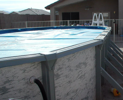 So when you are seriously trying to heat the pool you take the blanket off only long enough to swim. As the water becomes comfortable, but yet the nights are still cool, leave the blanket on at night to keep some of the warmth in the pool. Otherwise it will try to take on the same temperature as the cool night air.