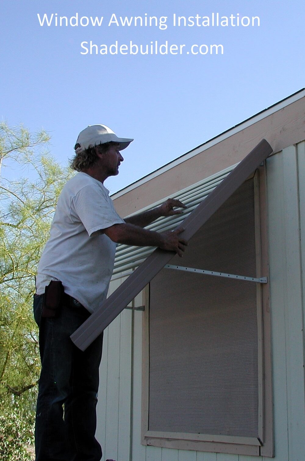 This page is about the simple steps you need to take to install an aluminum window awning. This type of awning is most often called a flex pan awning or a louvered awning. They are found in the RV parks all over Arizona on the park models. They are well suited for modular homes and residential houses.
