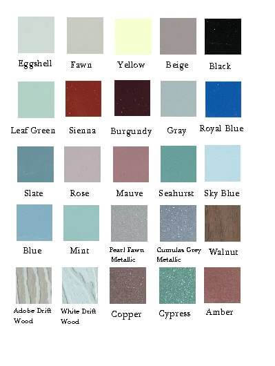 These are the many window awning colors to choose from. They can be mixed in any way you like. A common selection would be all white with one brown for the bottom valance.